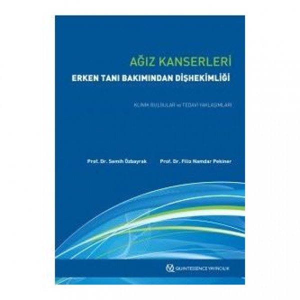 Öncü belirtiler ve radikal tedavi yaklaşımı arasında çoğu kez önemli zaman kaybının söz konusu olduğu, malign tümörler bakımından relatif küçük bir oranda olmakla birlikte rastlanma sıklığının giderek arttığı ağız kanserlerinin erken tanısında ve dolayısı ile prognozu kötüleşmeden hastaları yönlendirmede dişhekimleri 1. derecede sorumludurlar. Herhangi bir değişimin direkt olarak görülme şansı bulunmasına rağmen hastaların farkındalık eksikliği, belirtiyi hafife alma, önemsememe gibi yaklaşımlarının yanı sıra ilgi alanları öncelikli olarak dişlere odaklanan dişhekimlerinin de günlük rutinlerinin dışında olan değişimleri değerlendirme pratiğinin eksikliğine bağlı olarak bu konudaki tanı çoğu kez II. ve III. evrede konulabilmekte, buna bağlı prognoz veya postoperatif defeklerin de belirli oranda kötüleştiği bir gerçektir. Prekanserözlerin ve oral mukoza kanserlerinin morfolojik ve histopatolojik değişim örneklerinin ön planda ele alındığı bu kitapta ağız kanserleri epidemiyolojisi, etyolojik faktörler, erken tanı kriterleri ele alınmıştır. Ağız kavitesinde epitel kaynaklı olan ve olmayan malignomlar, tükürük bezi kaynaklı malignomlar orijinal resimlerle örneklenmiştir. Ağız kanserlerinde uygulanan tedavi yaklaşımları geniş bir literatür taraması şeklinde ele alınmış ve dişhekimliği yaklaşımı bakımından özel bir konuma sahip olan kanser tedavisinde ortaya çıkan oral belirtiler yine orijinal resimlerle vurgulanmıştır. Kitap okuyucuya toplam olarak 378 renkli resim, 13 şekil ve 6 tablo ile teorik bilginin yanı sıra değişimlerin çeşitliliği konusunda görsellik de sunmaktadır.